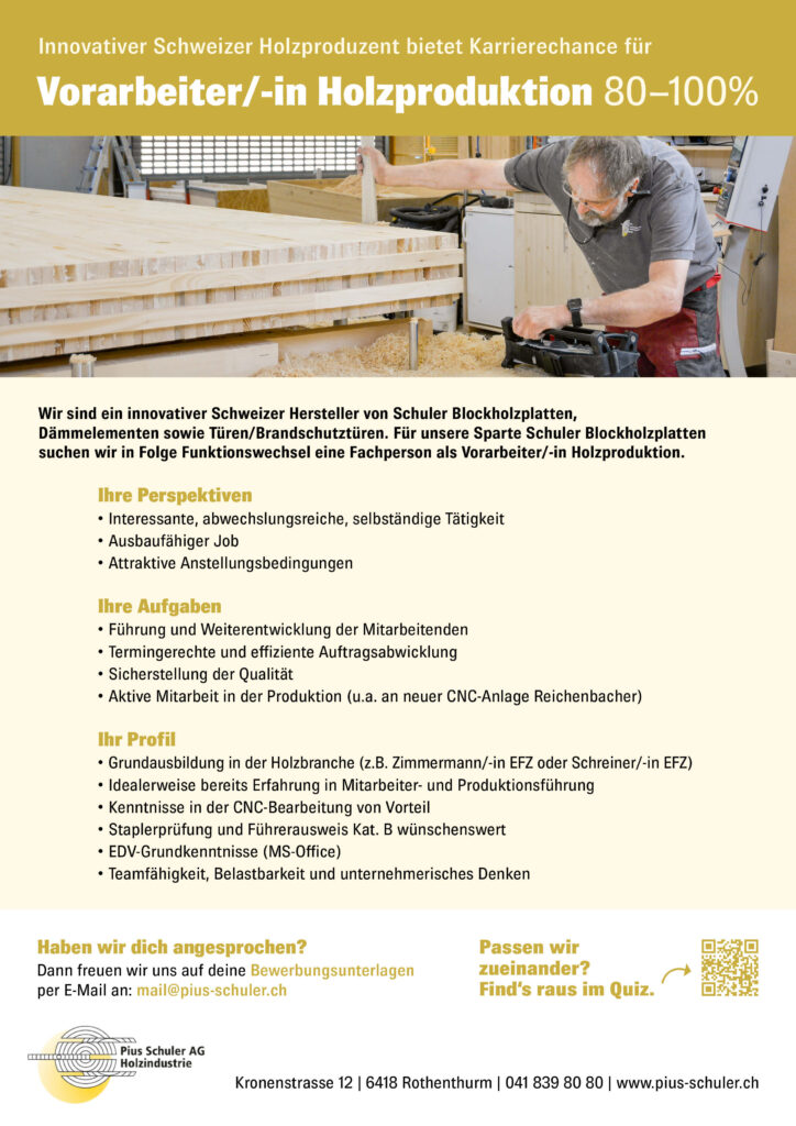 Bei der Pius Schuler AG ist folgende Stelle offen: